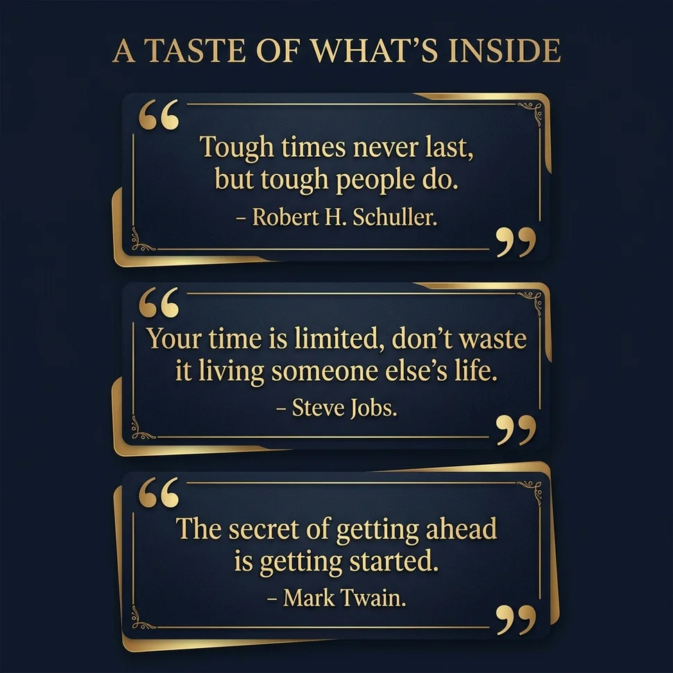 These aren’t random feel-good phrases. Every quote in this collection comes from someone who built something extraordinary — and the words on these pages are the principles that got them there. Keep it on your desk. Open it when you need a reset.
